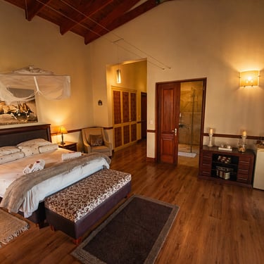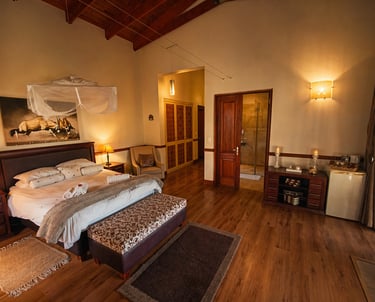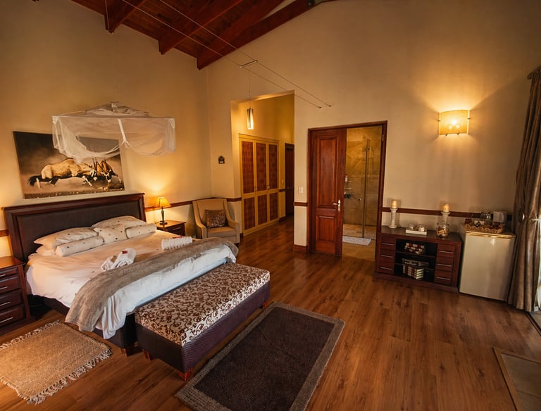 You'r staying in a luxurious 5 star room within the Crown Ivory house inside the game reserve and get to enjoy the luxury of tranquility of living in nature surrounded by wild animals and sounds of the wild at night.