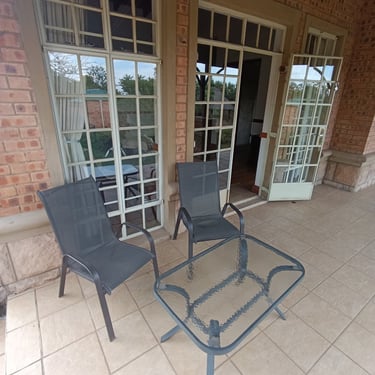 Only upon prior arrangement with the host as the farm house has some resident animals. The Dog would need to be very well trained and socialized and be on a leash when leaving into the game reserve.