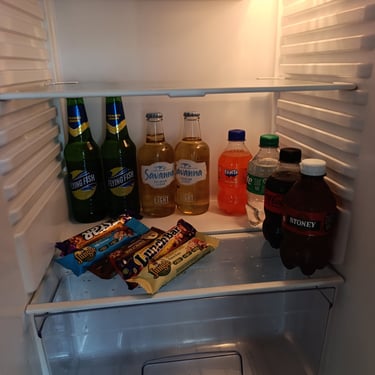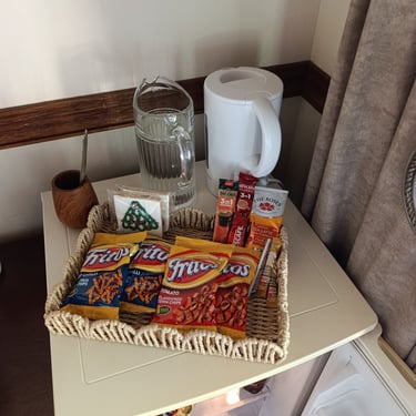 Breakfast is included, mini fridge (account) and coffee amenities are available. Snacks and drinks can be bought and dinner arranged if requested. Please pay what you take before you leave.